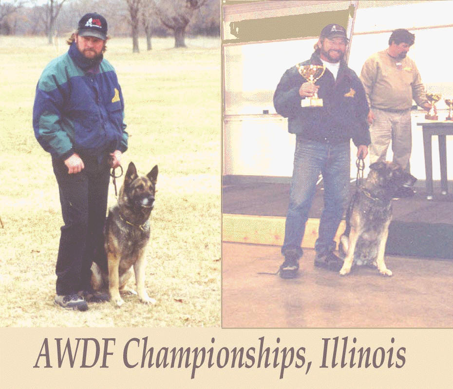 AWDF Championships in Savanna, Illinois and 1st place Schutzhund 1 dog.